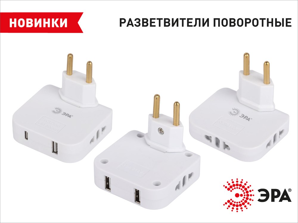 Выпустили линейку поворотных разветвителей ЭРА — это компактные, удобные и универсальные устройства для дома и офиса, в том числе для непростых монтажных условий.