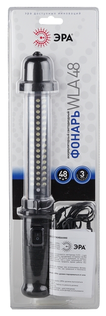 Аккумуляторный светодиодный фонарь с 48 яркими белыми светодиодами. Бюджетный и функциональный вариант дополнительного освещения для автомобиля. Ёмкость аккумулятора - 1200 mA. Этого хватает на 3 часа непрерывной работы. Зарядное устройство в комплекте. ЭРА WLA48 изготовлен из ударопрочного пластика - не боится даже самых суровых российских дорог. Имеется удобный крючок, чтобы закрепить свет, если нужно рассмотреть что-то под капотом. Рукоятка обрезинена - фонарь удобно держать в руках.