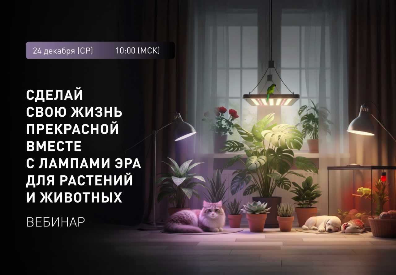 «Сделай свою жизнь прекрасной с лампами ЭРА для растений и животных!» — под таким слоганом пройдёт наш финальный вебинар в уходящем году.