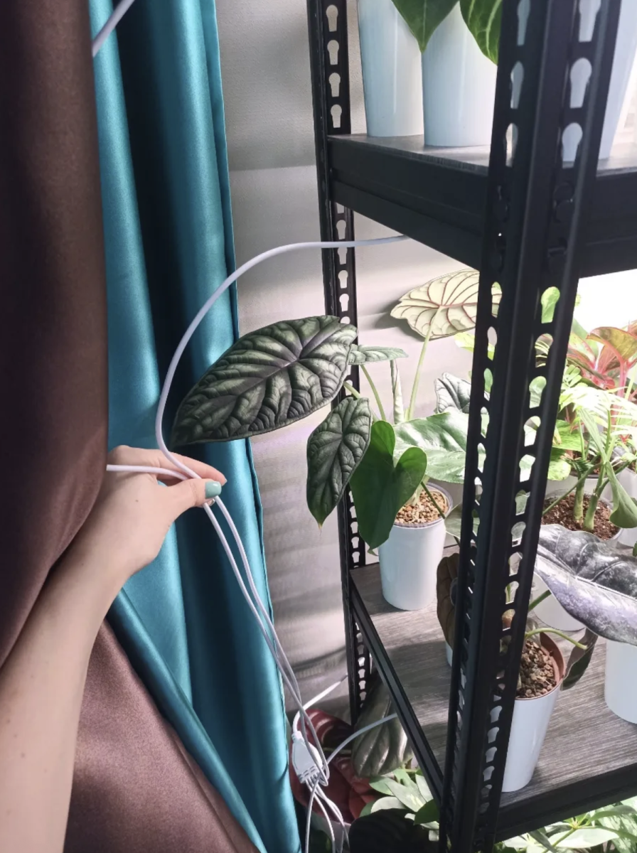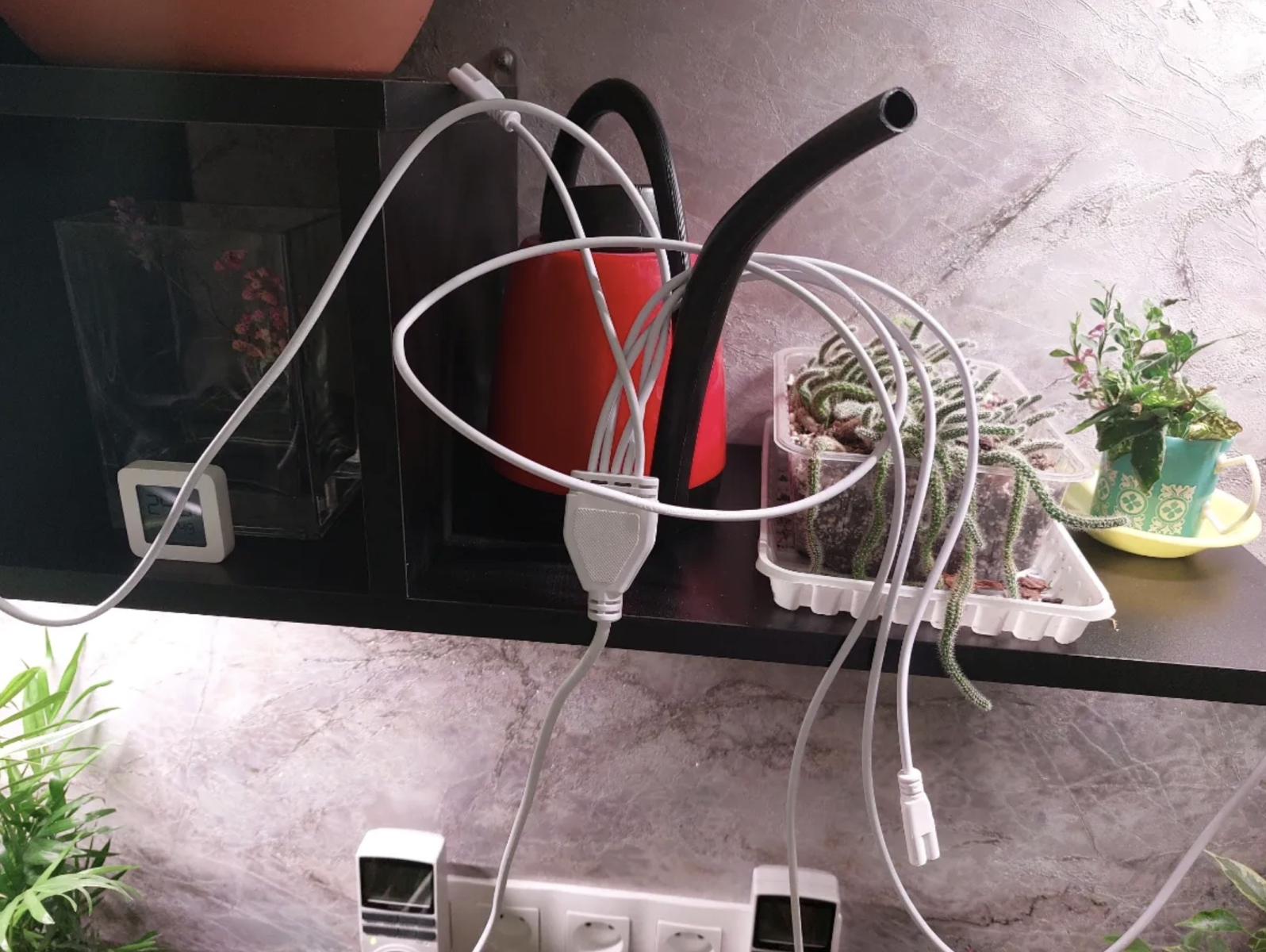 Очень удобно! Без кучи проводов сталлаж с цветами смотрится очень аккуратно.