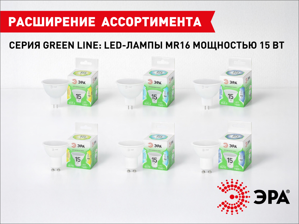 В серии ЭРА Green Line появились LED-лампы MR16 мощностью 15 Вт