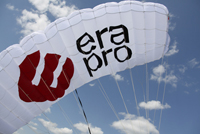 Белый парашют с алым логотипом и черными буквами ERA PRO поднимался в небо над подмосковной Коломной пять раз. Нарядный купол привлекал к себе внимание спортсменов-парашютистов и представителей прессы, которые приехали специально, чтобы посмотреть на полеты этого парашюта. Символично, что первые прыжки с куполом выполнила PR-директор ТМ ERA PRO Ольга Караулова, за плечами которой более 600 парашютных прыжков. Но для того, чтобы показать журналистам и зрителям всю красоту нового купола и его особые возможности, следующие три прыжка выполнил профессионал, мастер спорта Антон Фалендюк. «Это действительно очень серьезный парашют, требующий отличной подготовки пилота, и мы заказывали его специально в Америке, - говорит PR-директор торговой марки. - Парашют называется Катана, его площадь 97 квадратных футов, очень маленькая даже для спортивных парашютов, и мы считаем, что именно такое экстремальное оборудование может стать символом торговой марки, которая надежно защищает портативную технику от ударов и влажности, от любых повреждений», - считает представитель компании.